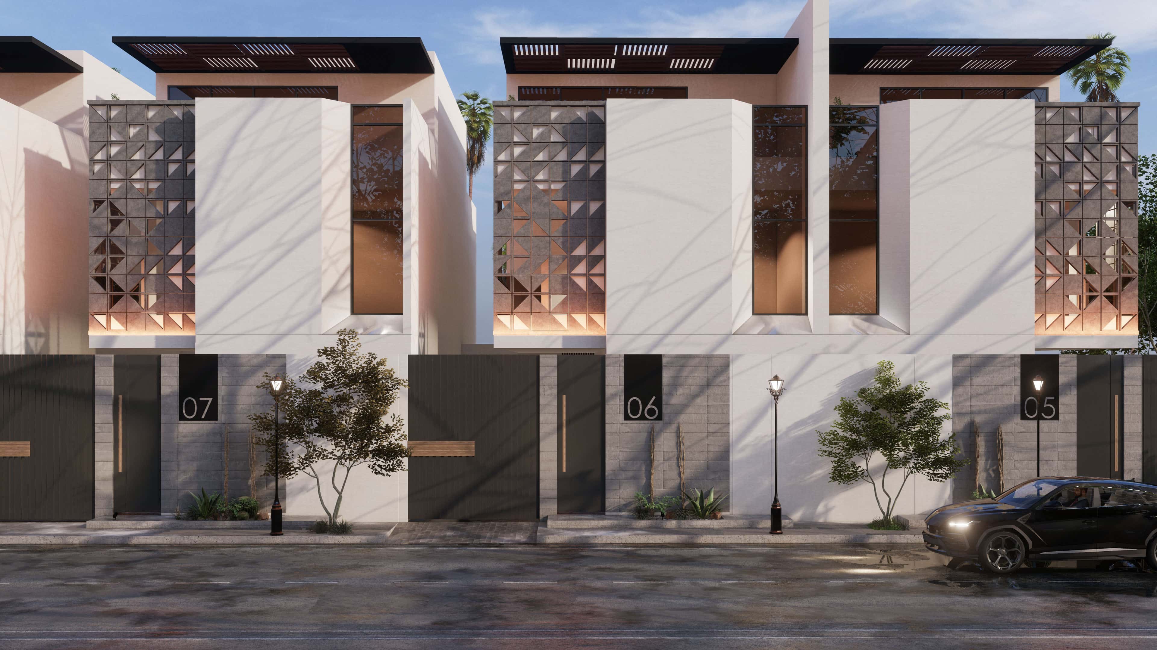 فلل فاخرة بتصميم معماري مميز ومساحات خضراء واسعة. تجمع بين الأصالة والحداثة في تصميم يعكس الهوية المحلية .